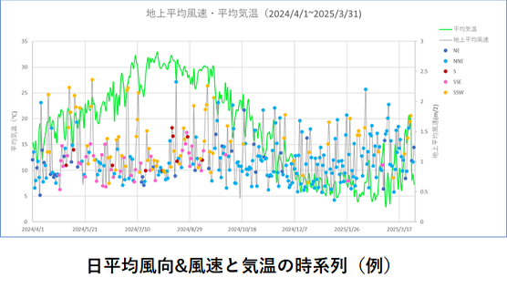 これらの場合でも、上空風向毎の風速出現頻度を詳細に分析して「地表付近の年間(期間)における風環境評価」を行うことが有効です。